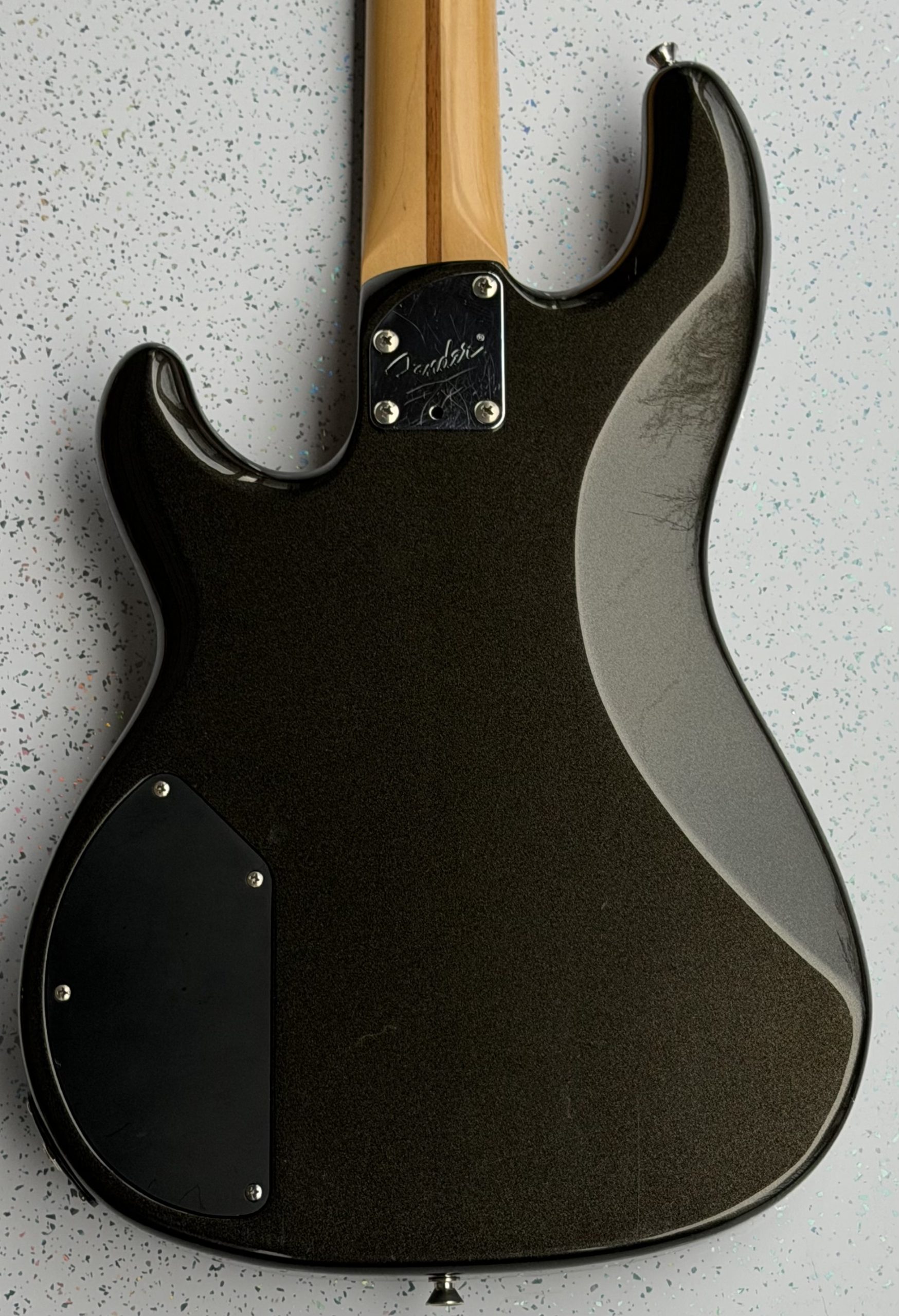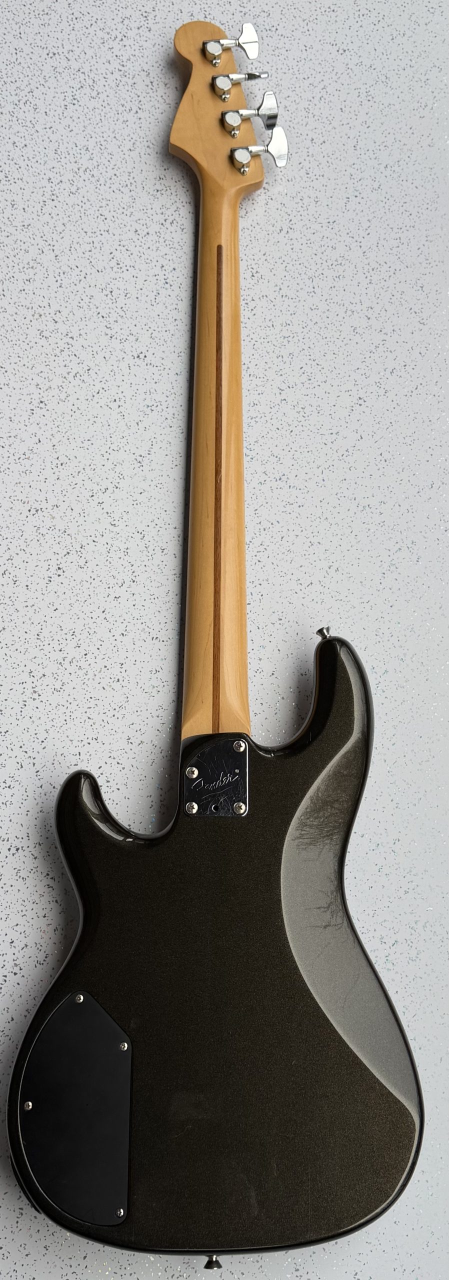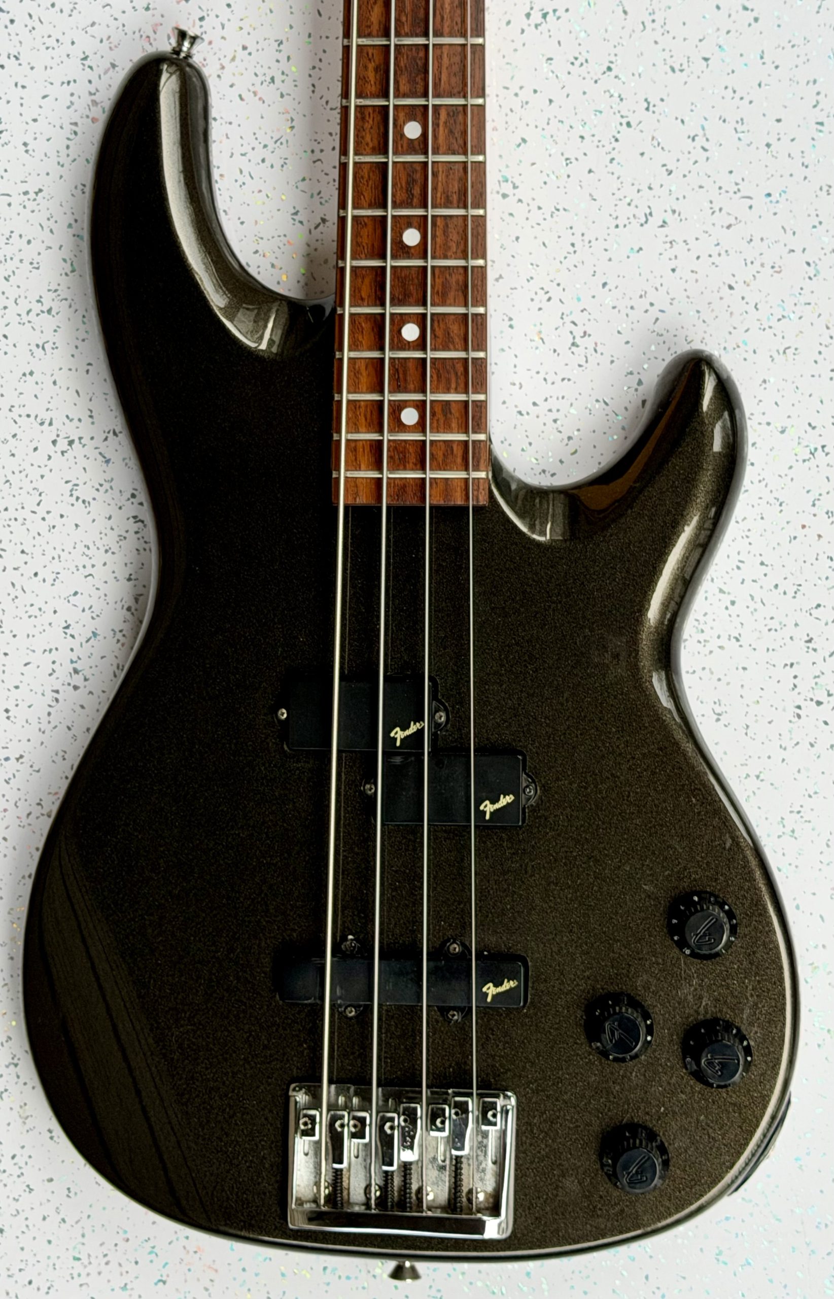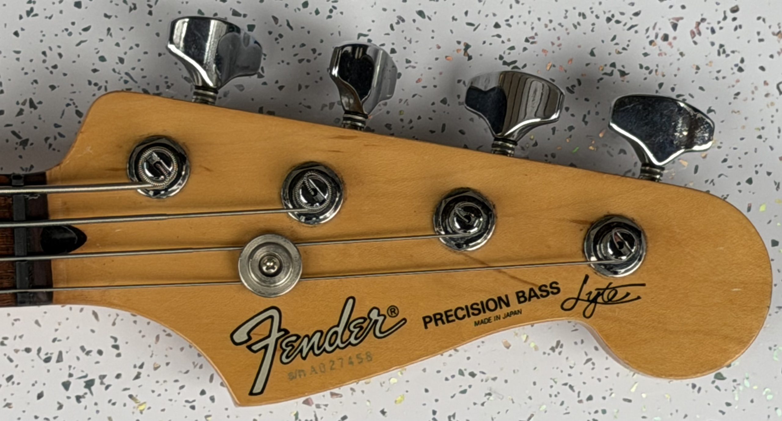 1985/86, Fender Precision bass Lyte. Finished in pewter with a rosewood fretboard. This, rare Made in Japan bass guitar is is superb condition, with just very small insignificant surface marks. It is nicely set up and it plays wonderfully it comes complete with a gig bag.