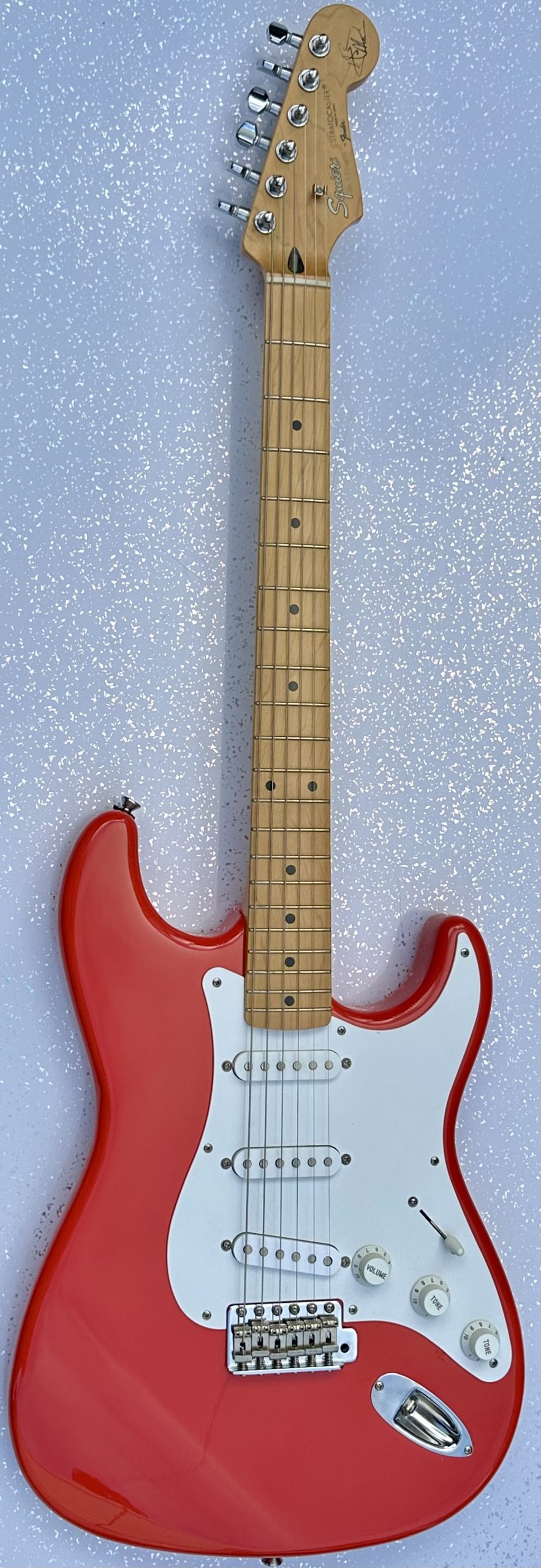 * Product Specs Brand- Squier Model- Hank Marvin Signature Finish- Fiesta Red Year- 1990 Made In- Japan Body- Basswood Neck- Maple Neck Profile- ‘C’ Fingerboard- Maple Fingerboard Radius- 7.25″ Frets- 21 Scale Legnth- 25.5″ Nut Width- 1.657″ Pickups- 3x Standard Single-Coil Pickups Controls- 5-Way pickup Selector, Master Volume, Neck Tone, Middle Tone