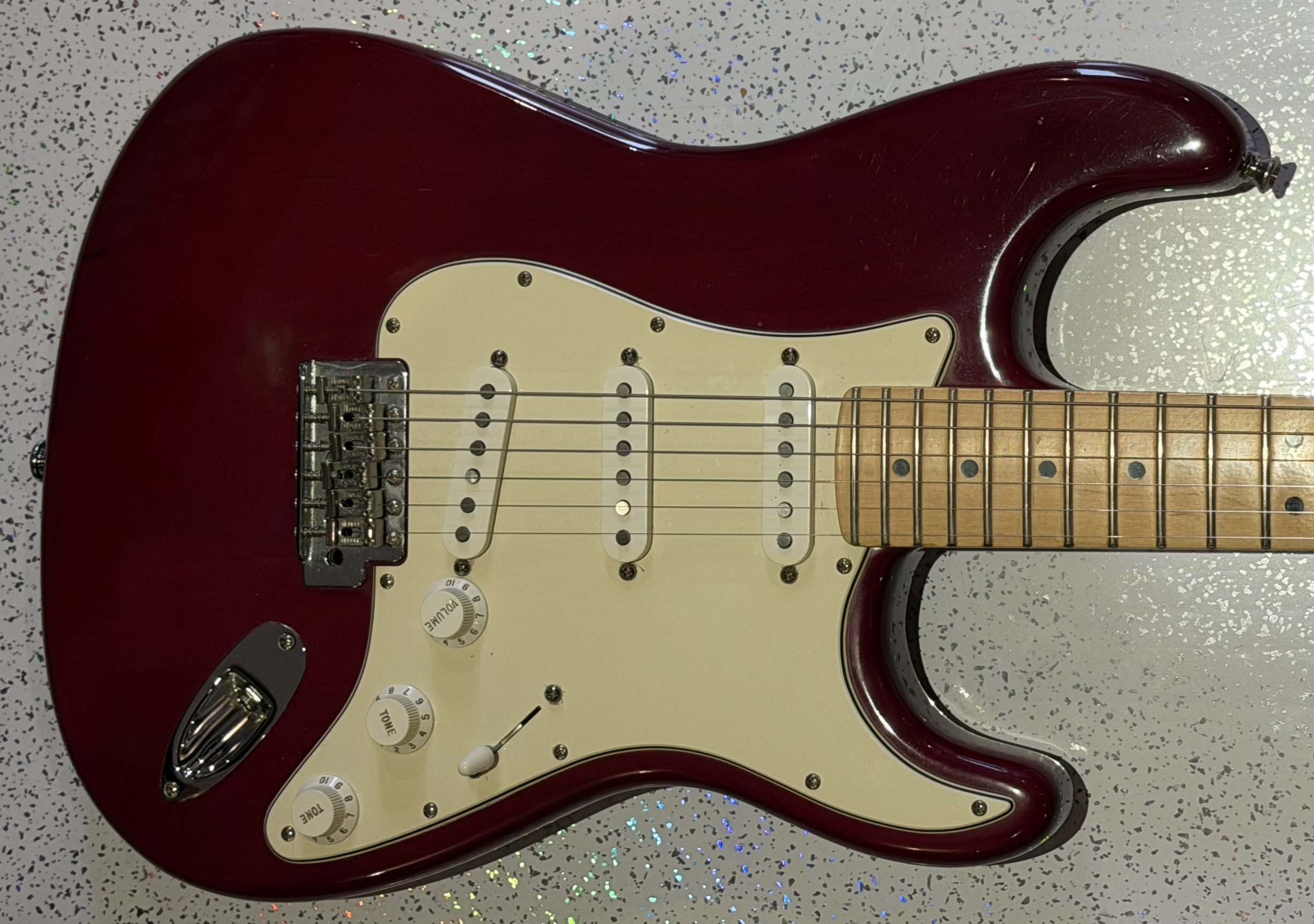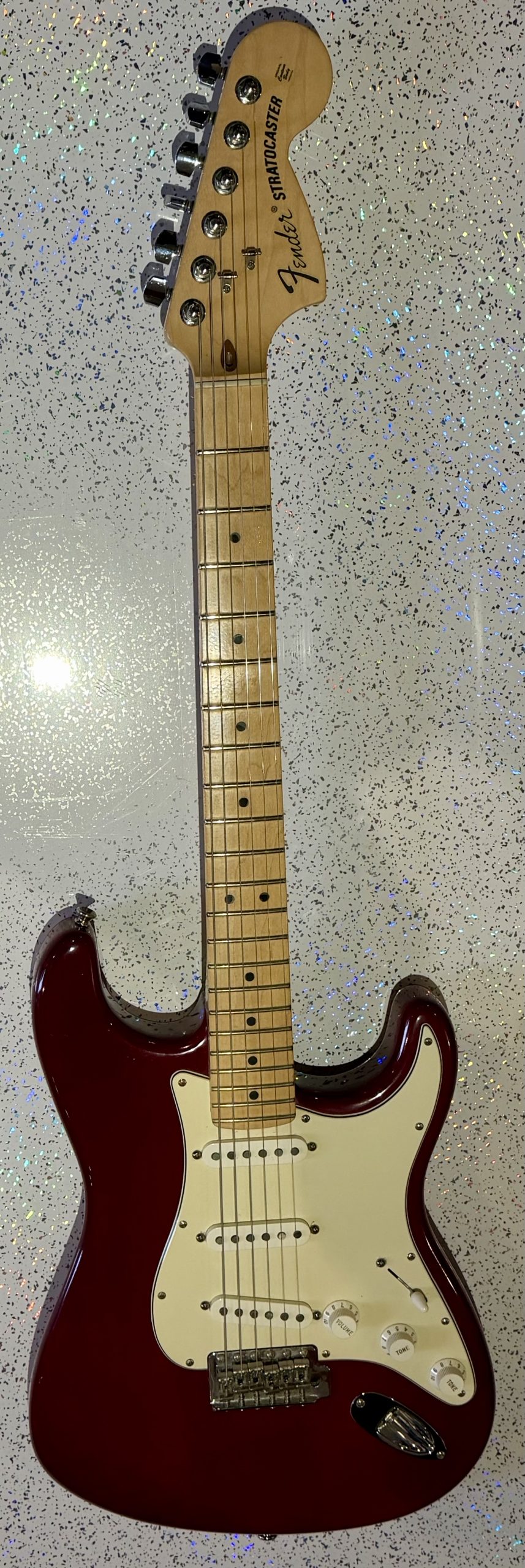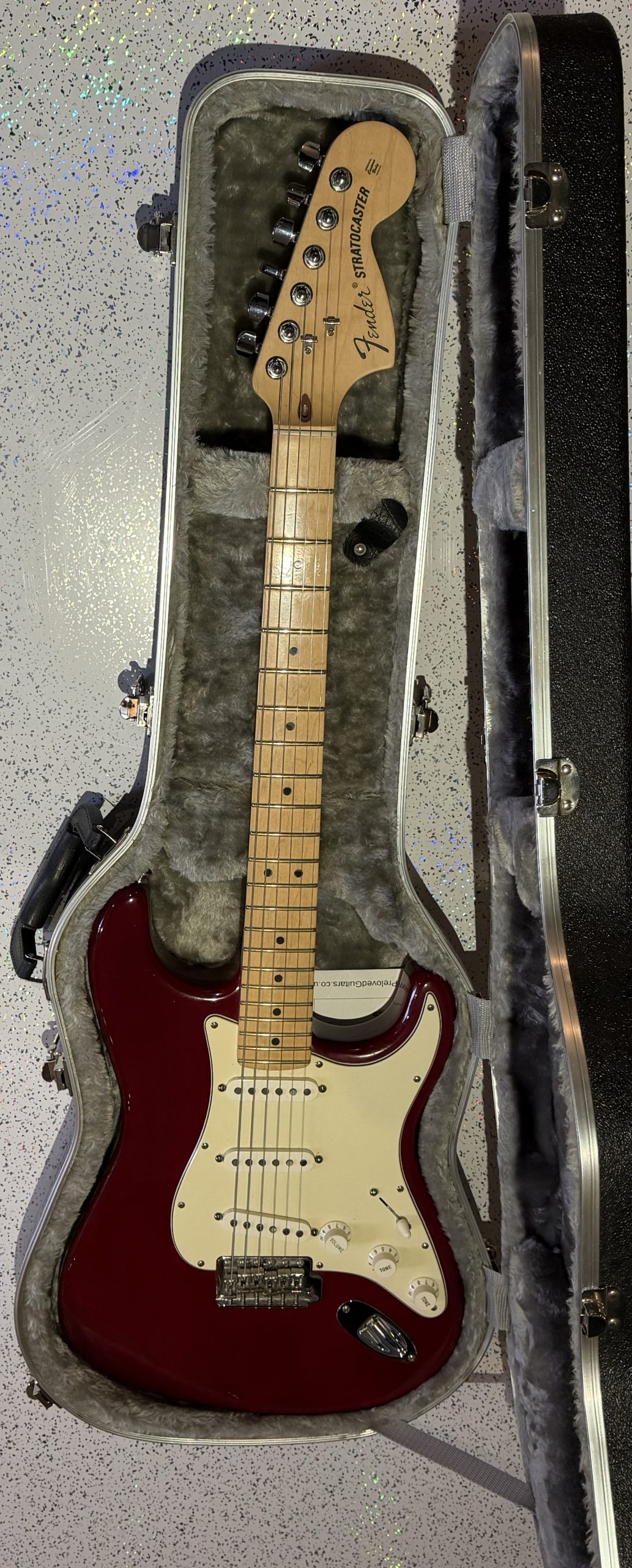2006, Fender Stratocaster Highway One, 60th anniversary, finished in Midnight Wine transparent with a maple neck. This Guitar is in superb condition with no significant marks. It is nicely set up and it plays great. It comes complete with a fitted hard case.