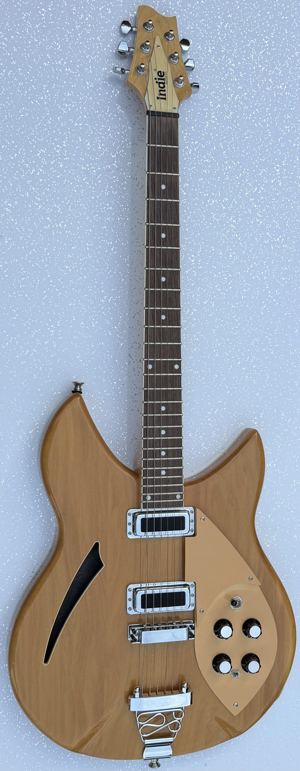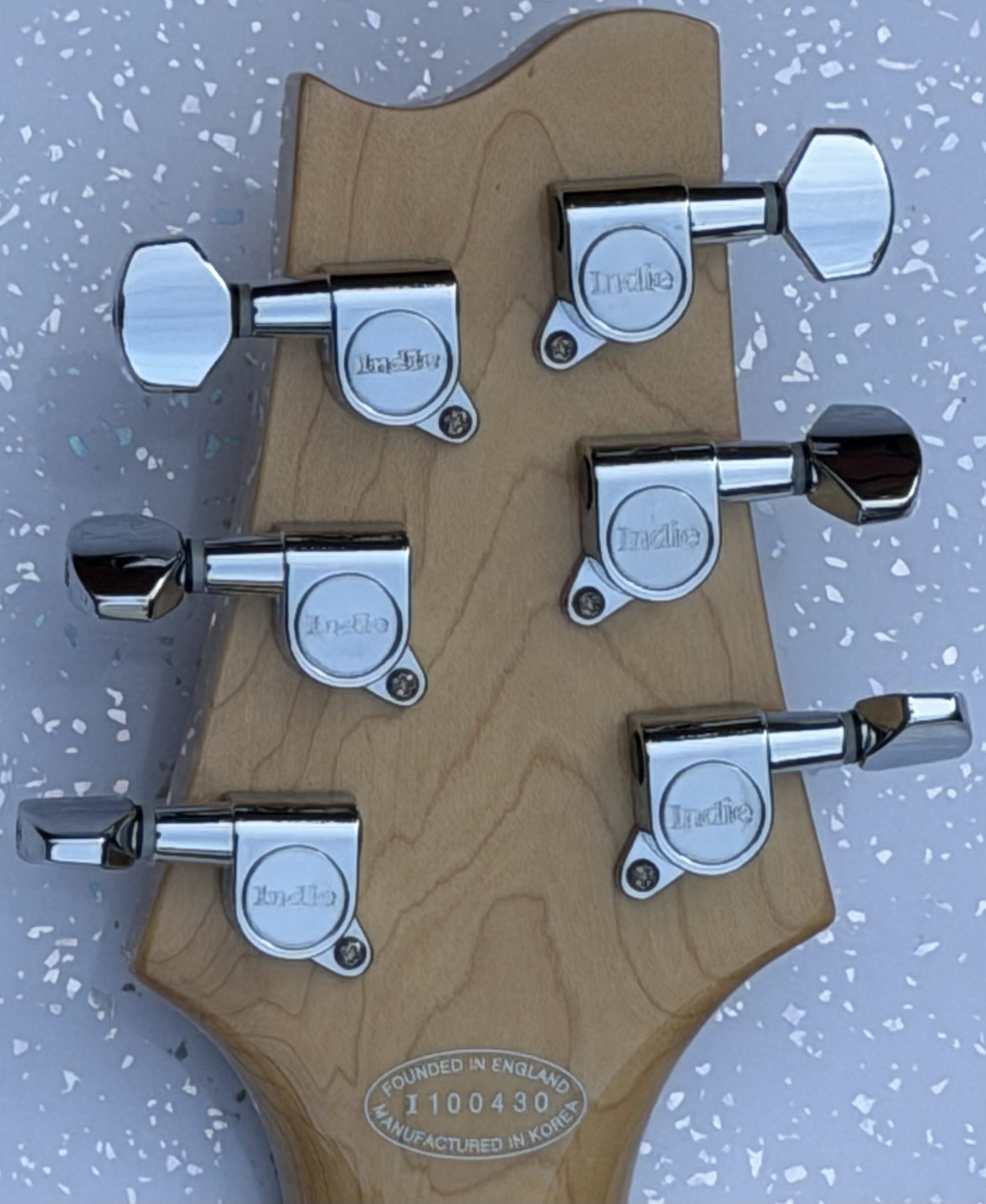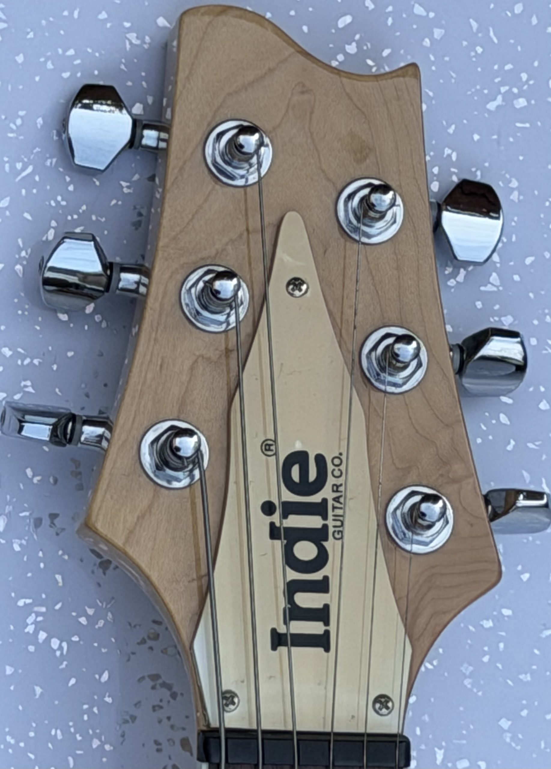2011 Indie Guitar Co IRK 500 electric guitar, made in Korea; These are a British-based guitar brand built at the Epiphone factory in Korea. Body: Natural;Neck: excellent; Fretboard: rosewood; Frets: excellent; Electrics: all working; Hardware: excellent; Case: gig bag; Overall condition: pristine