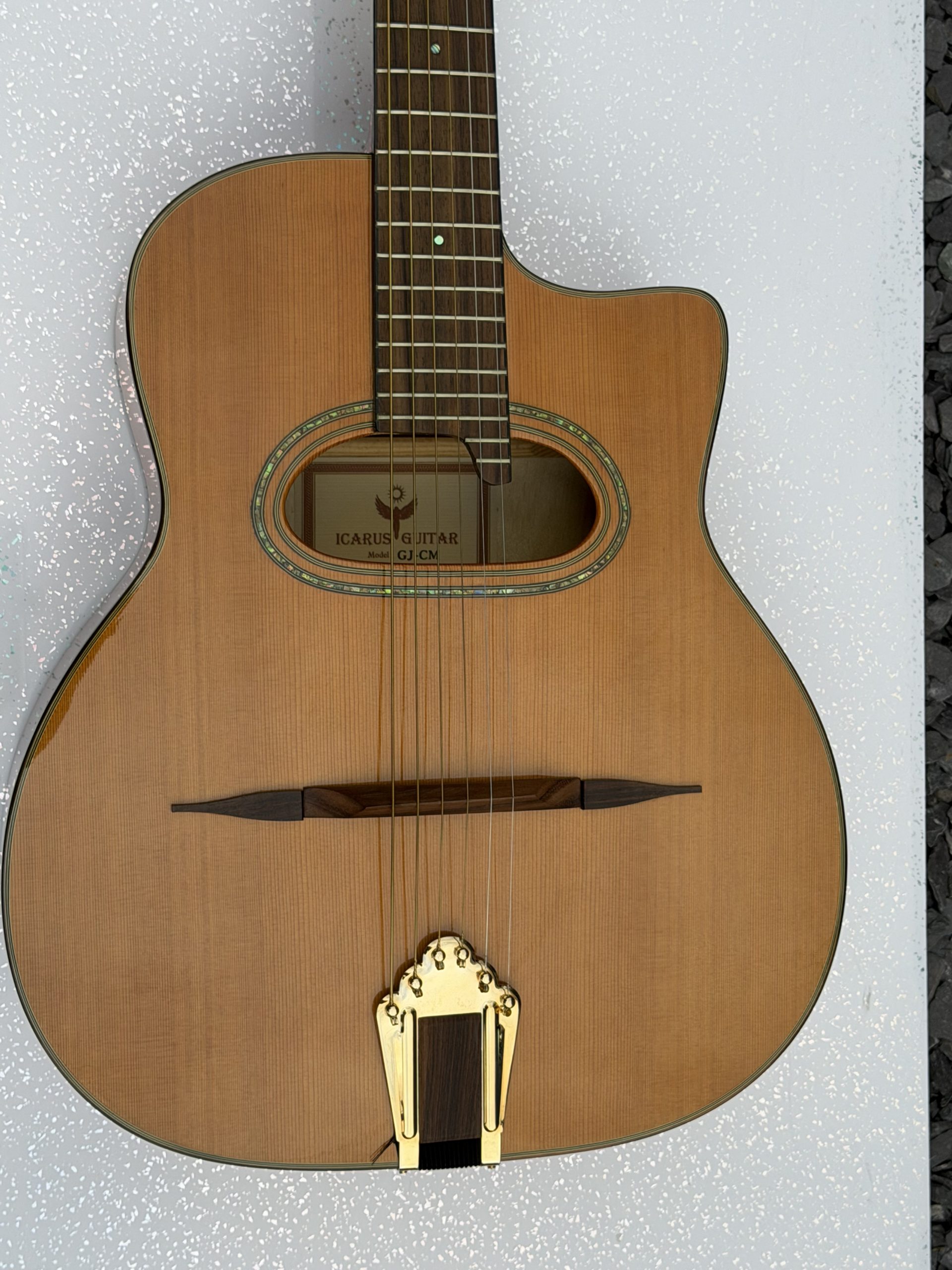 2015 Icarus GJ-CM Gypsy Jazz acoustic guitar; Back and sides: laminated maple; Top: