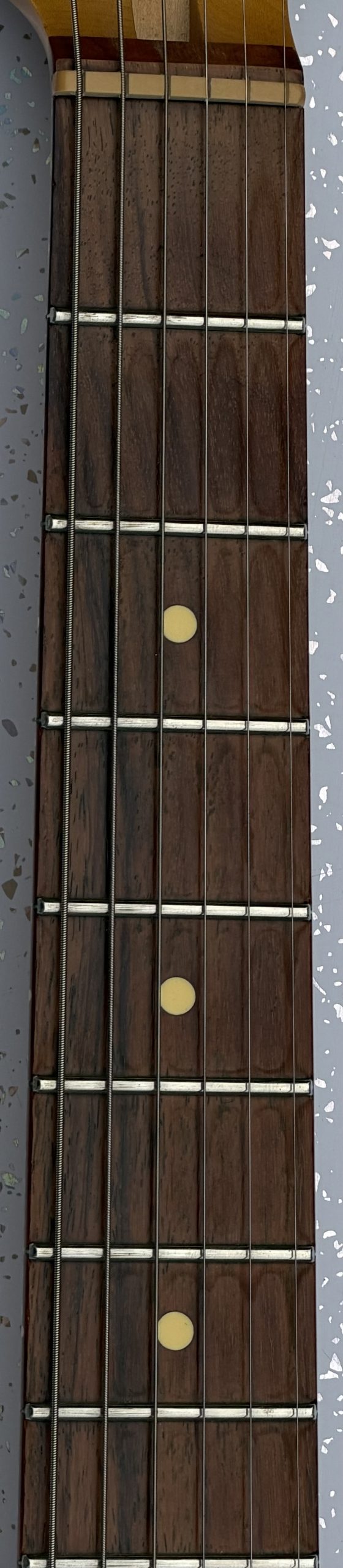 Neck: maple; Fretboard: rosewood; Frets excellent ; Electrics: all working; Hardware: excellent ; Weight: 3.55kg; Overall condition: excellent . This is amazing.