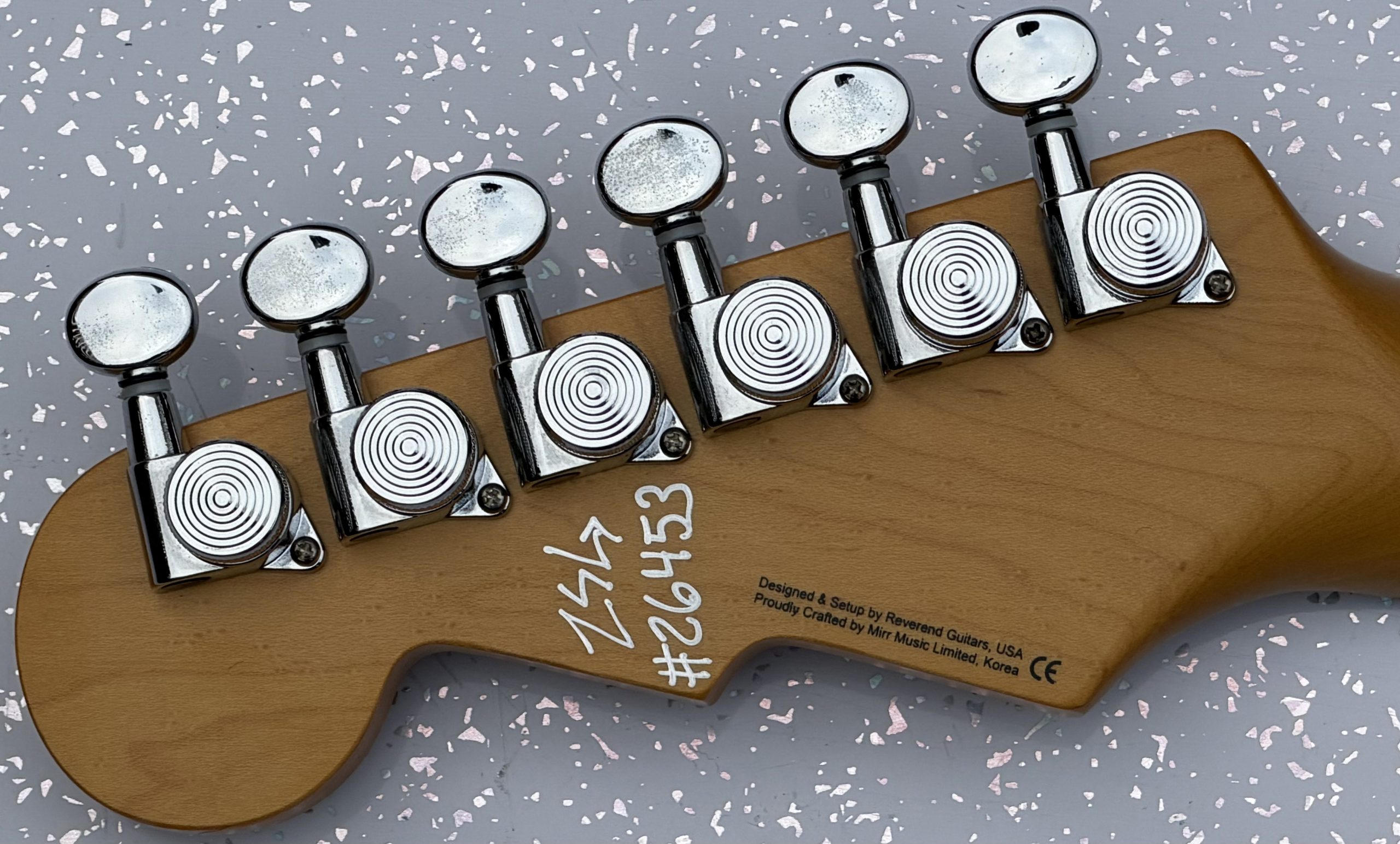 The solid korina body of this instrument delivers plenty of tonal zing. Using korina is part of the Reverend secret. Bolted on to the body of the Reverend Charger 290 is a Roasted Maple neck and Roasted Maple fretboard with a twelve inch radius. The medium oval profile is very comfortable for many. The medium jumbo frets help reduce fatigue over long playing periods. Roasted Maple is normally used on custom shop and high-end boutique built guitars. Reverend have brought this material to a price bracket never seen before. The Roasted Maple that Reverend have used has been kiln dried to remove most of the moisture. This results in a neck resistant to temperature and humidity. The advantages also include stability and increased resonance.