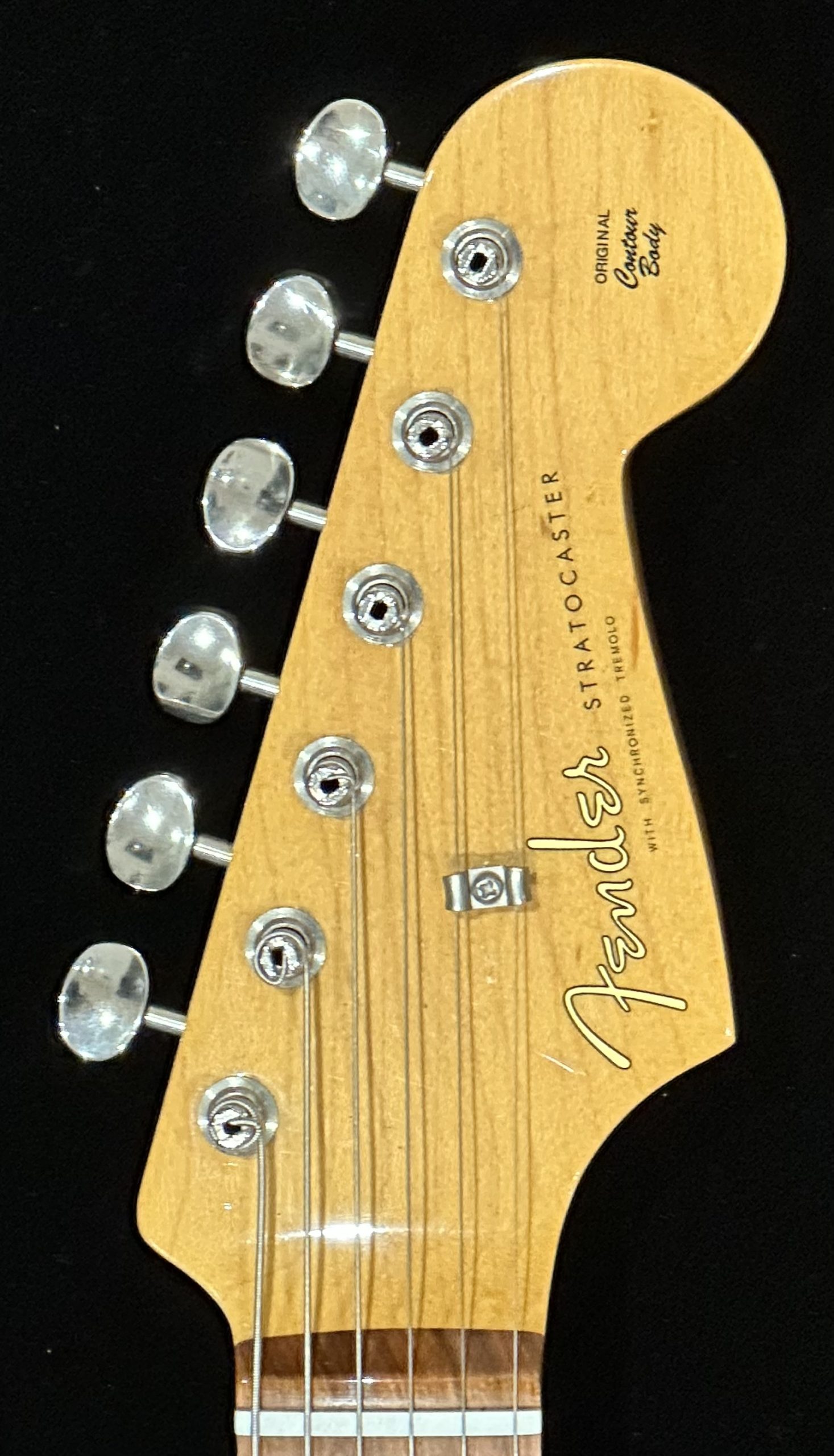 For authentic, vintage-style tone we recreated the trio of single-coil Stratocaster pickups to sound more like the originals. Crystalline and bell-like, they have the crisp, articulate tone that put Fender on the map. The “Mid ’60s C”-shaped neck has a 7.25″-radius fingerboard with 21 vintage-style frets for classic playing feel. A vintage-style, six-point synchronized tremolo and vintage-style tuning machines offer original-era aesthetics, rock-solid performance and tuning stability. Other features include vintage-style strap buttons, chrome hardware and four-bolt neck plate. Includes a deluxe gig bag.