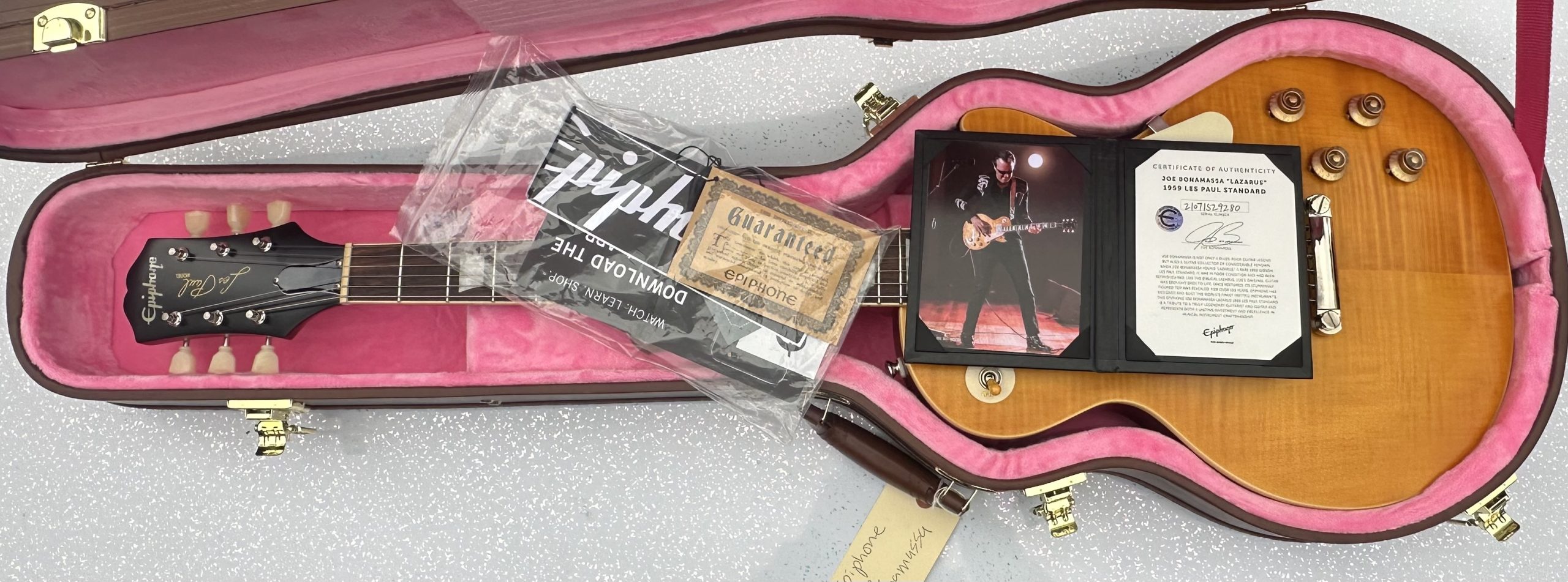 To complete the package, the Epiphone Joe Bonamassa “Lazarus” 1959 Les Paul Standard comes with a vintage-style case adorned with Bonamassa graphics, offering stylish and secure protection for your prized instrument. Additionally, a Certificate of Authenticity is included, guaranteeing that each guitar is an authentic representation of Joe Bonamassa’s vision and dedication to the art of guitar playing.