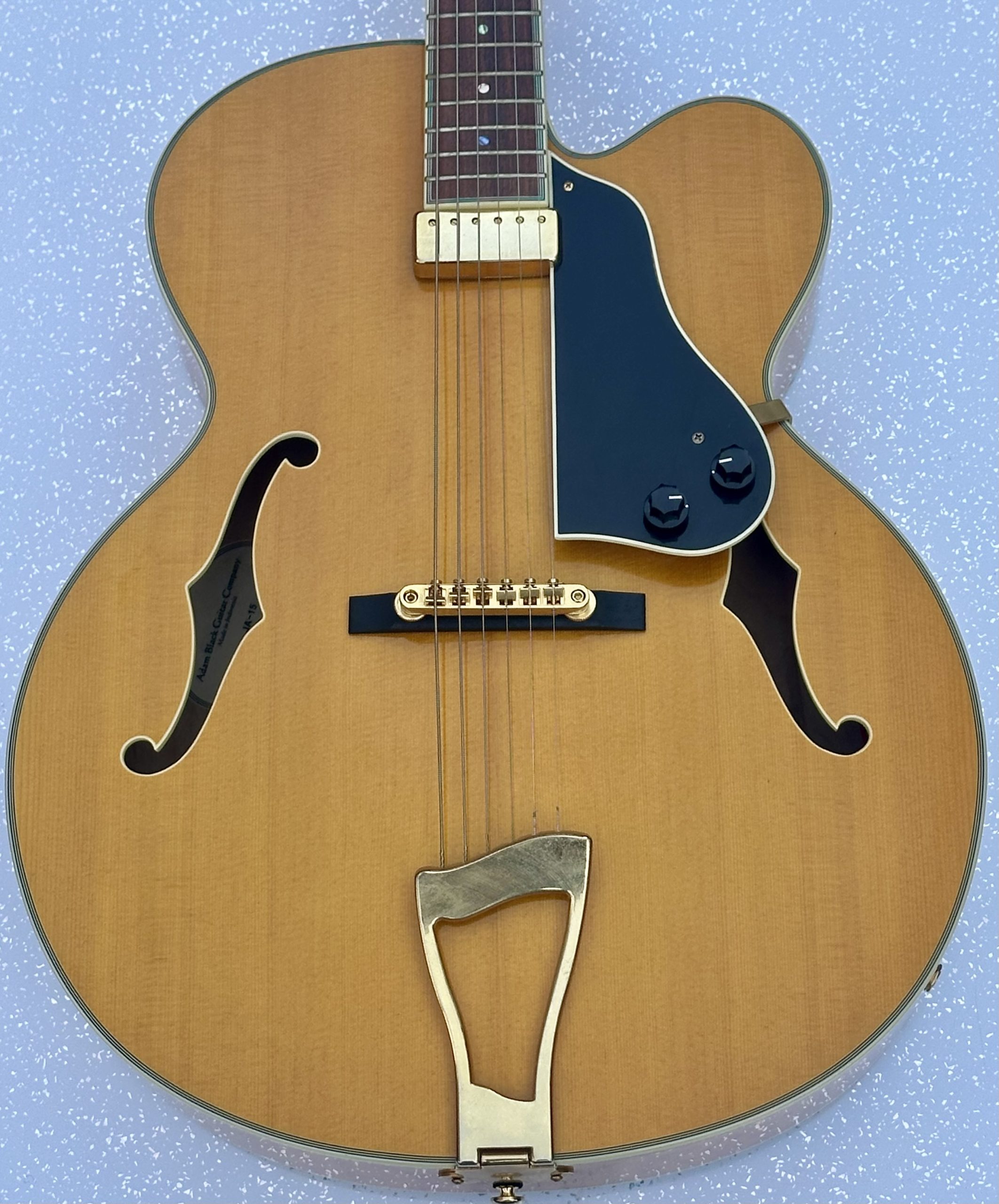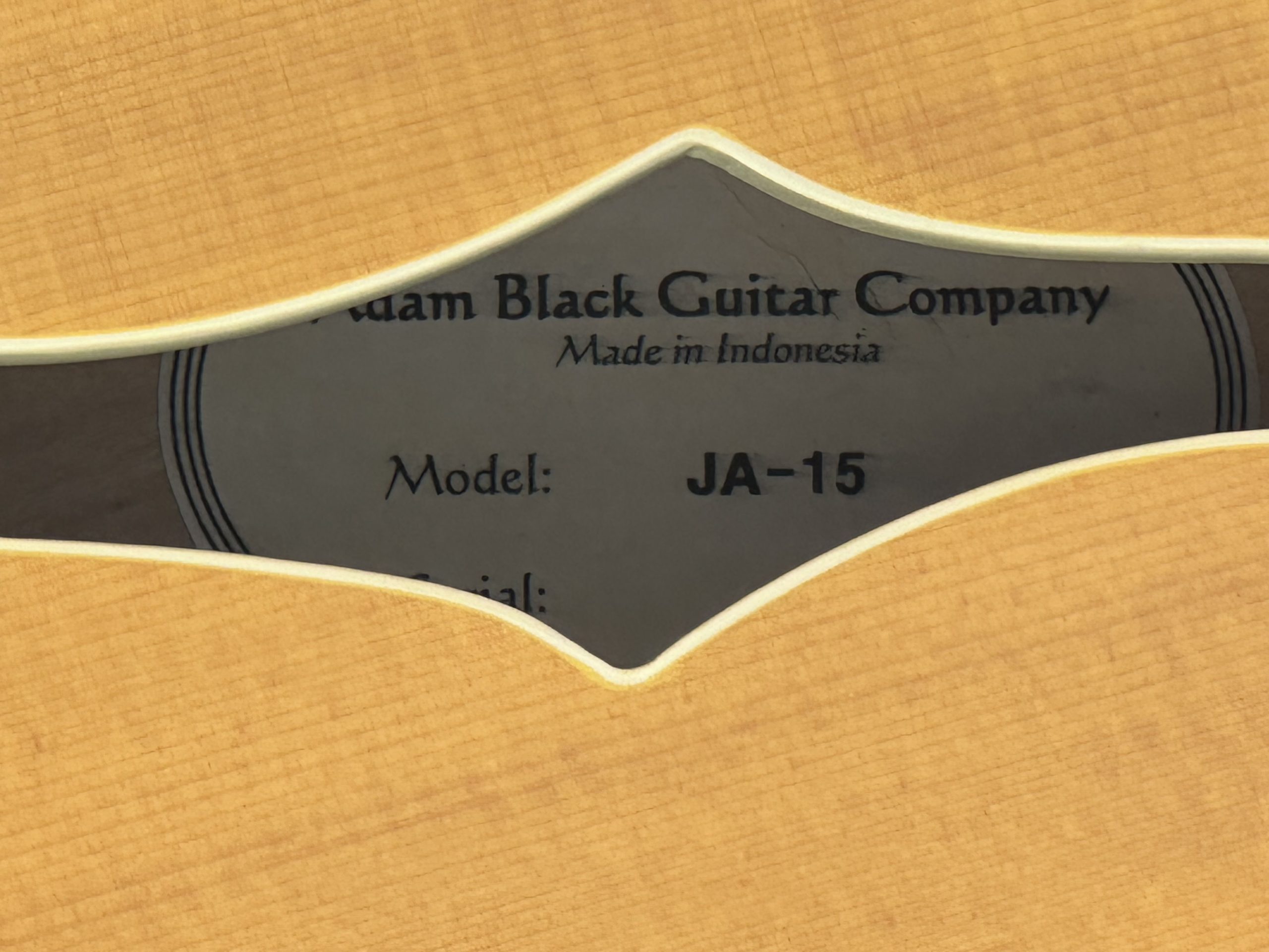 2004 Adam Black JA-15 hollow body electric guitar, made in Korea; Back and sides: natural finished quilted maple; Top: natural finish spruce; Neck: excellent ; Fretboard: rosewood; Frets: excellent ; Electrics: all working; Hardware: excellent ; Case: very nice condition fitted hard case; Weight: 3.32kg; Overall condition: excellent