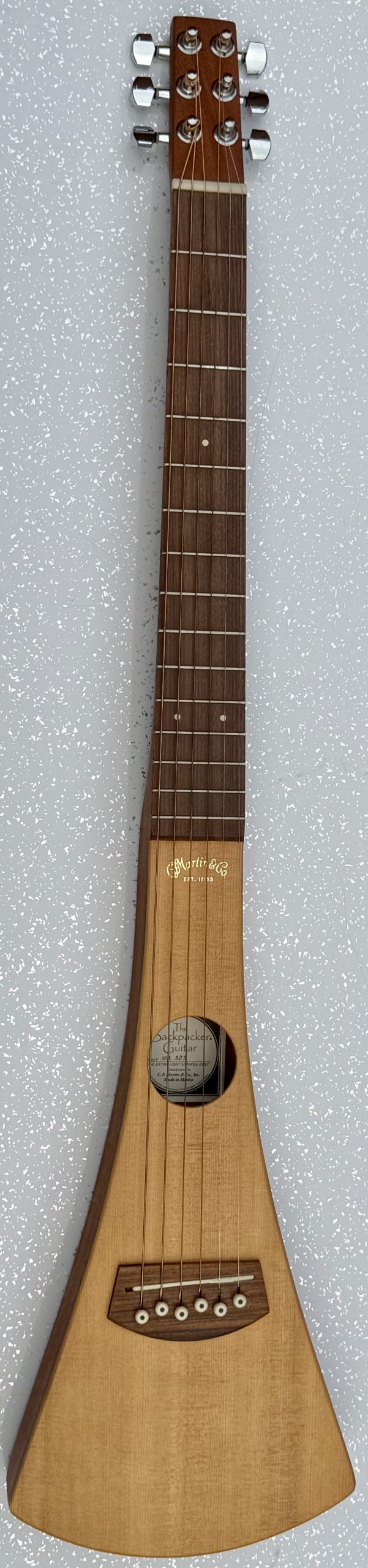 C.F Martin Backpacker steel string travel guitar, with original gig bag & Strap. This guitar is in superb condition. It is nicely set up and it plays great. Here’s an opportunity to make a huge saving on the best online price