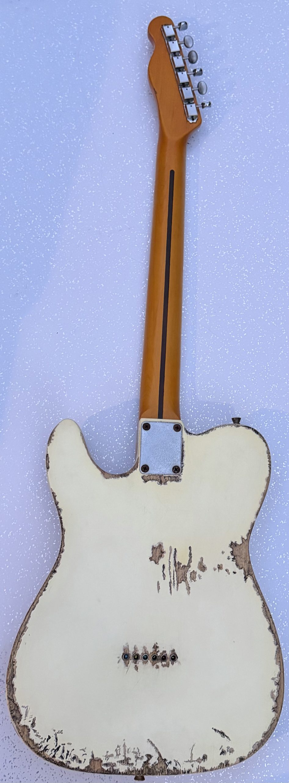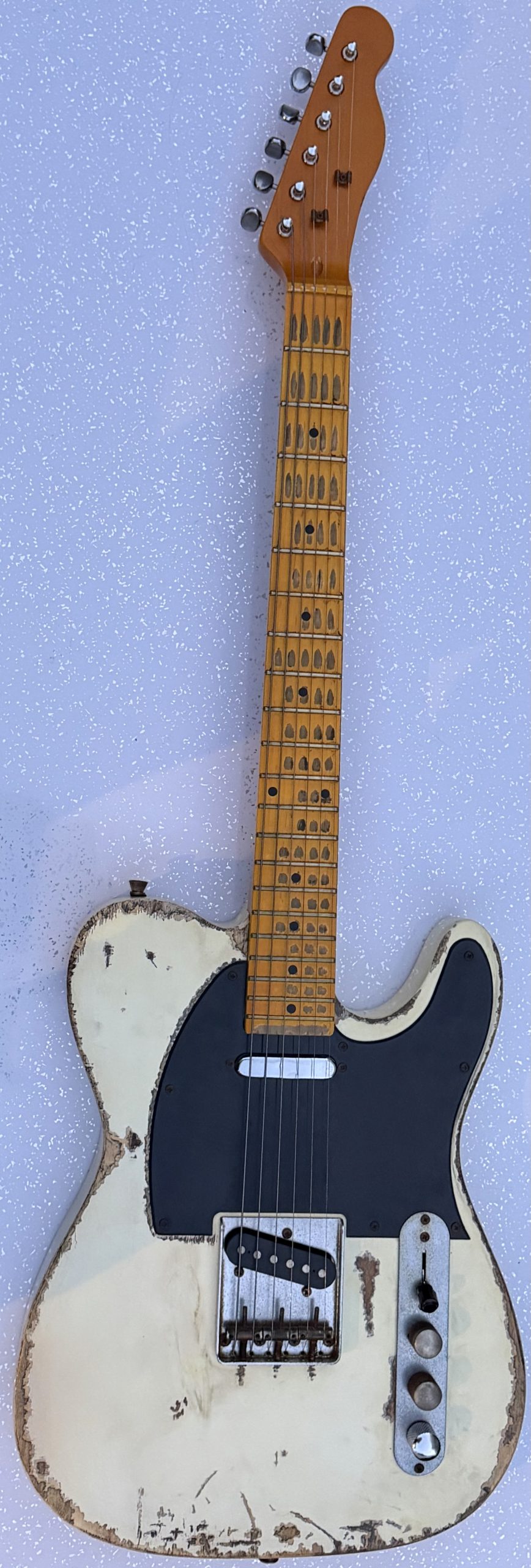Custom built Relic’d Telecaster in white with a Maple neck and a ‘Twang Banger’ circuit.