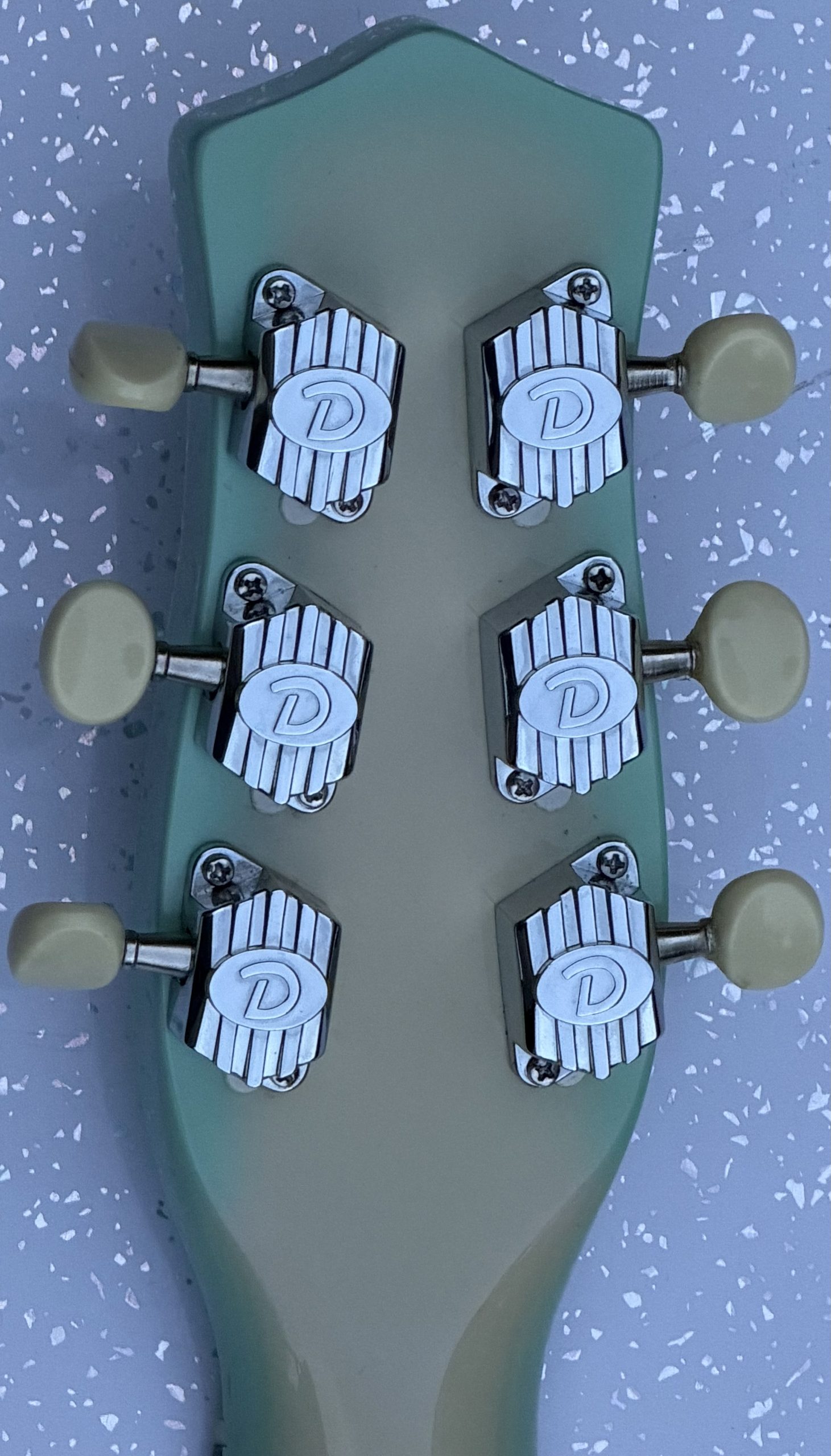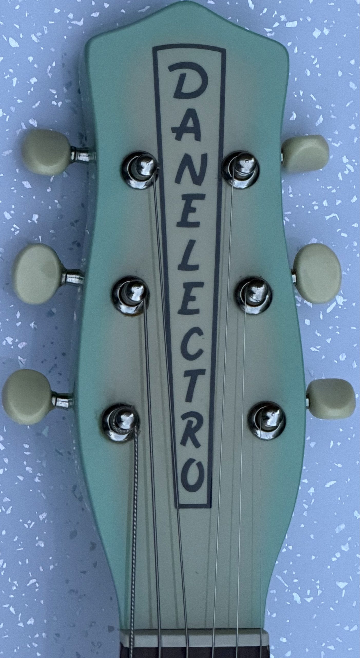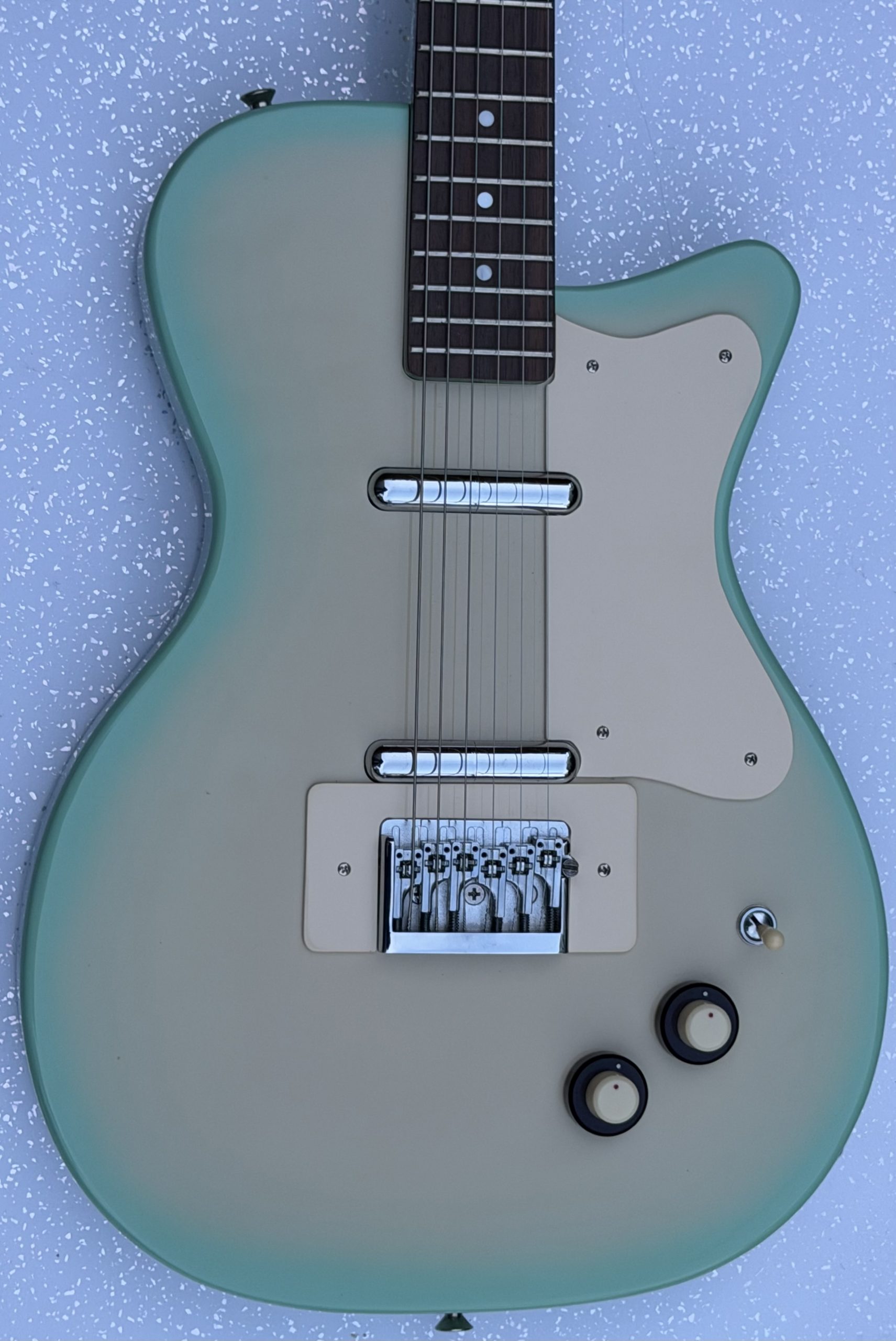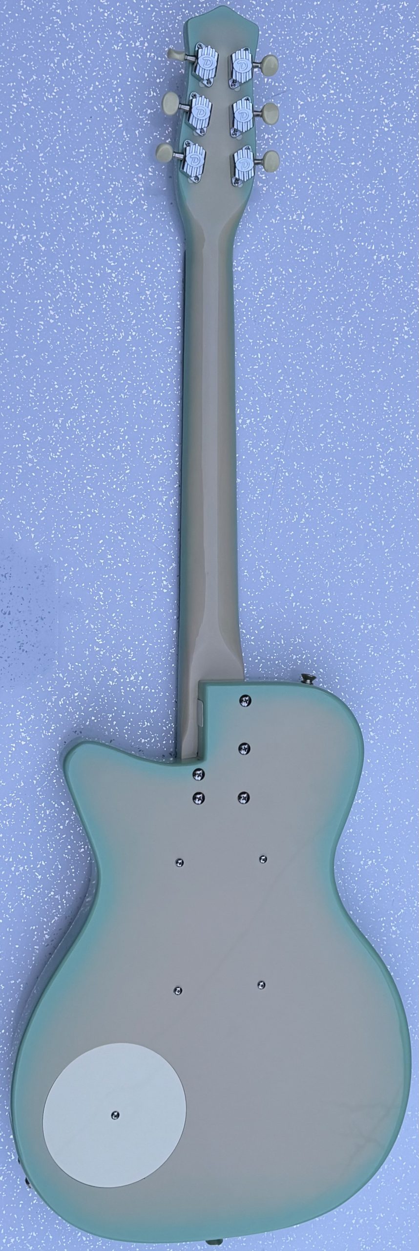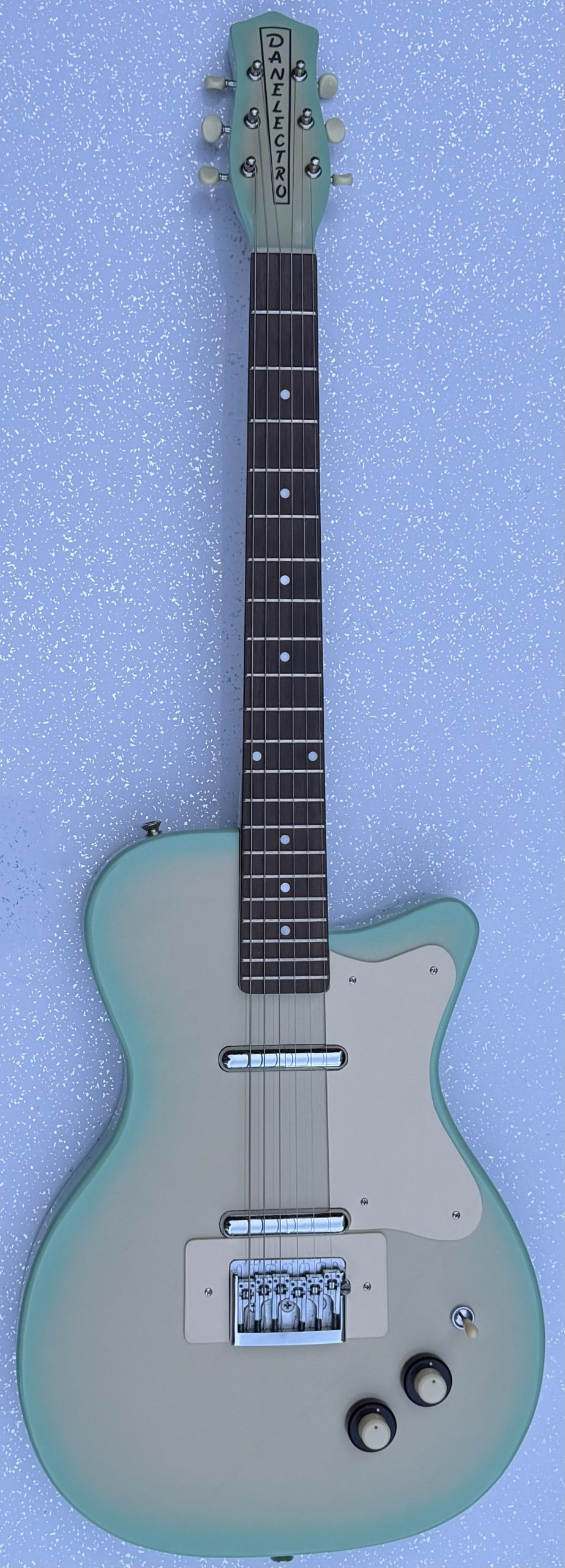 Danelectro ’56 electric guitar, made in Korea, green burst finish, replacement guard, replacement