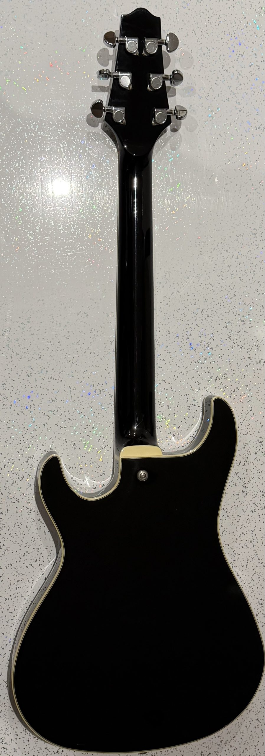 The AWD guitars have an arched top, double-cutaway, semi-hollow body design with a modern shape vaguely reminiscent of a Fender Stratocaster or some of Ibanez’s Roadstar II series models from the 1980s. It has an arched top and a flat back.