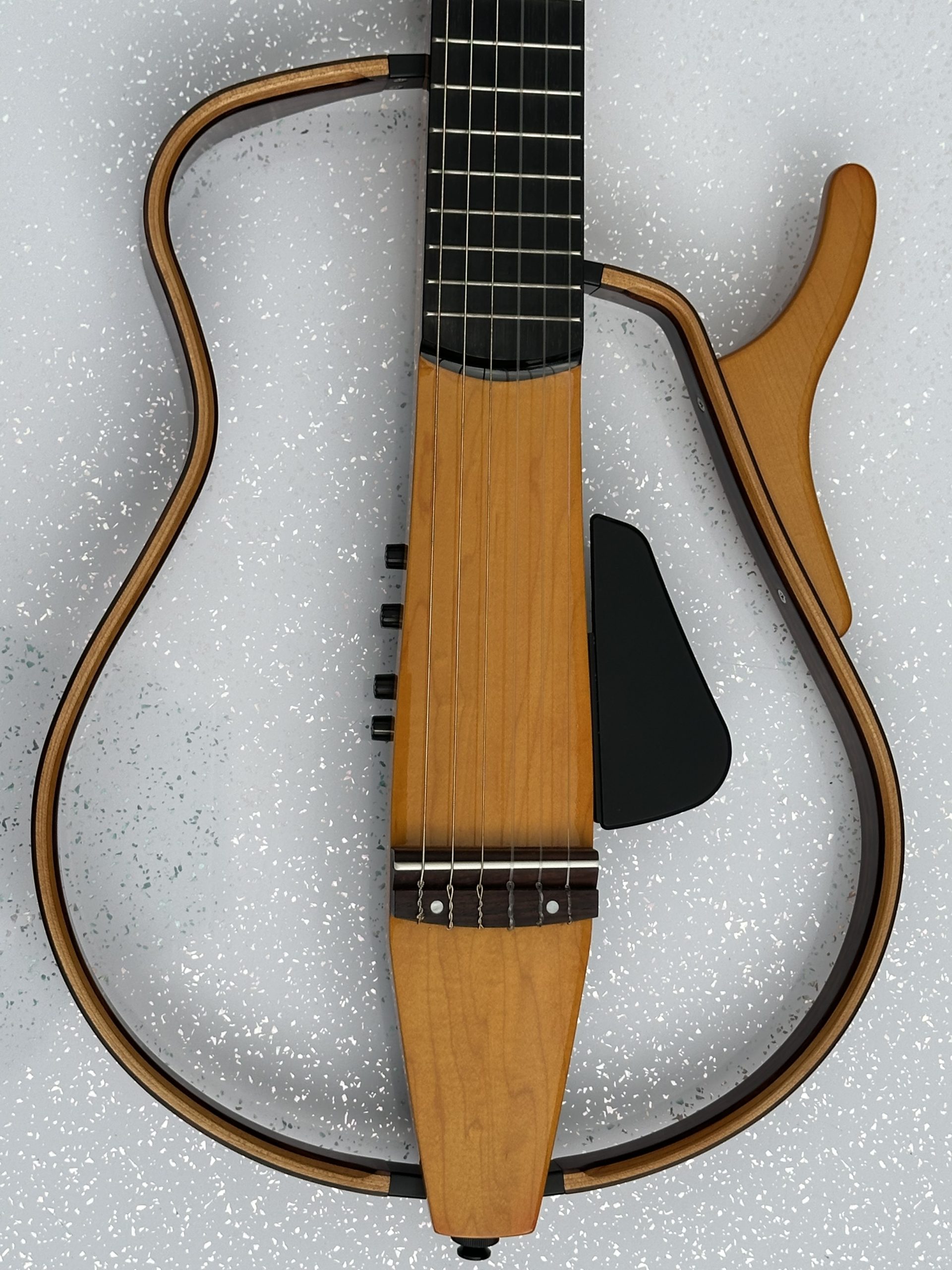The bodiless design of the SLG offers a natural, quiet sound that allows guitarists to play without disturbing others, whether practicing late at night or playing in the living room when the family is home. The SLG200S is eighty percent quieter than a conventional acoustic guitar.